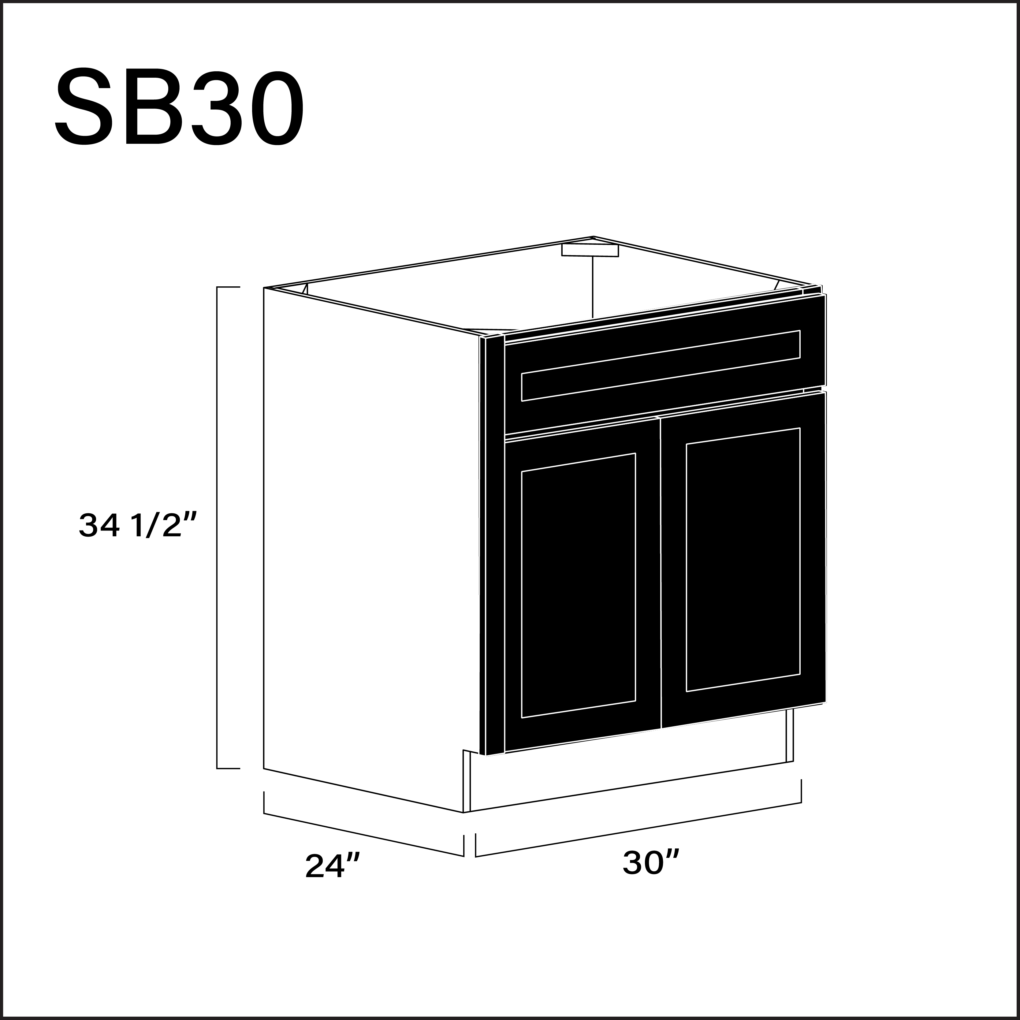• Black Shaker Sink Base Kitchen Cabinet - 30" W x 34.5" H x 24" D