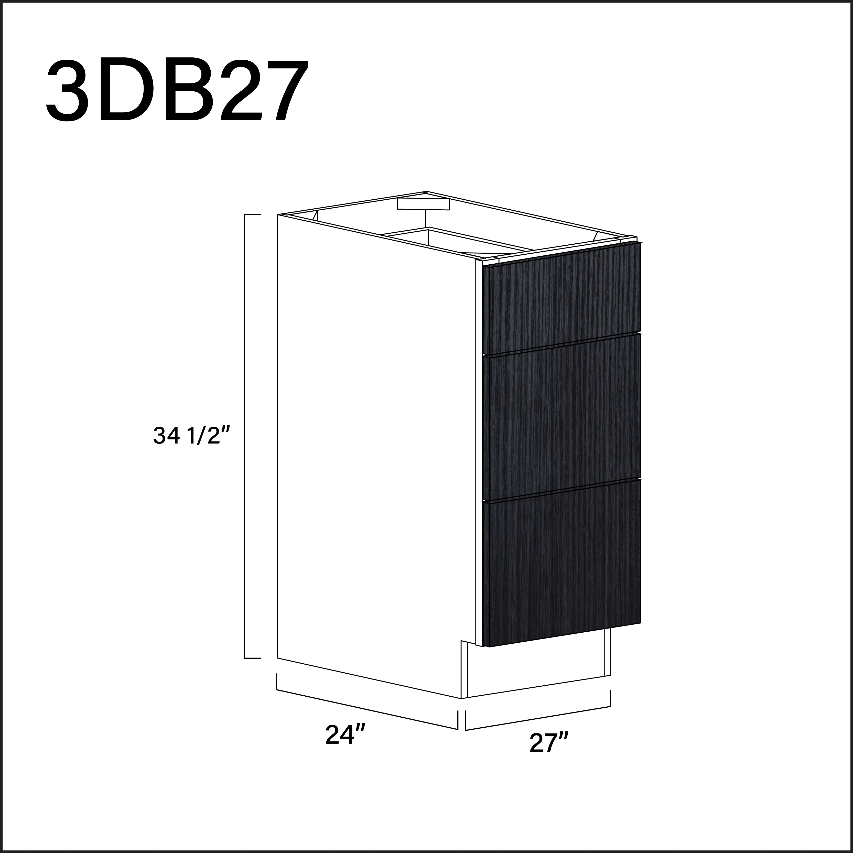 • Darkwood Frameless 3 Drawer Kitchen Base Cabinet - 27" W x 34.5" H x 24" D