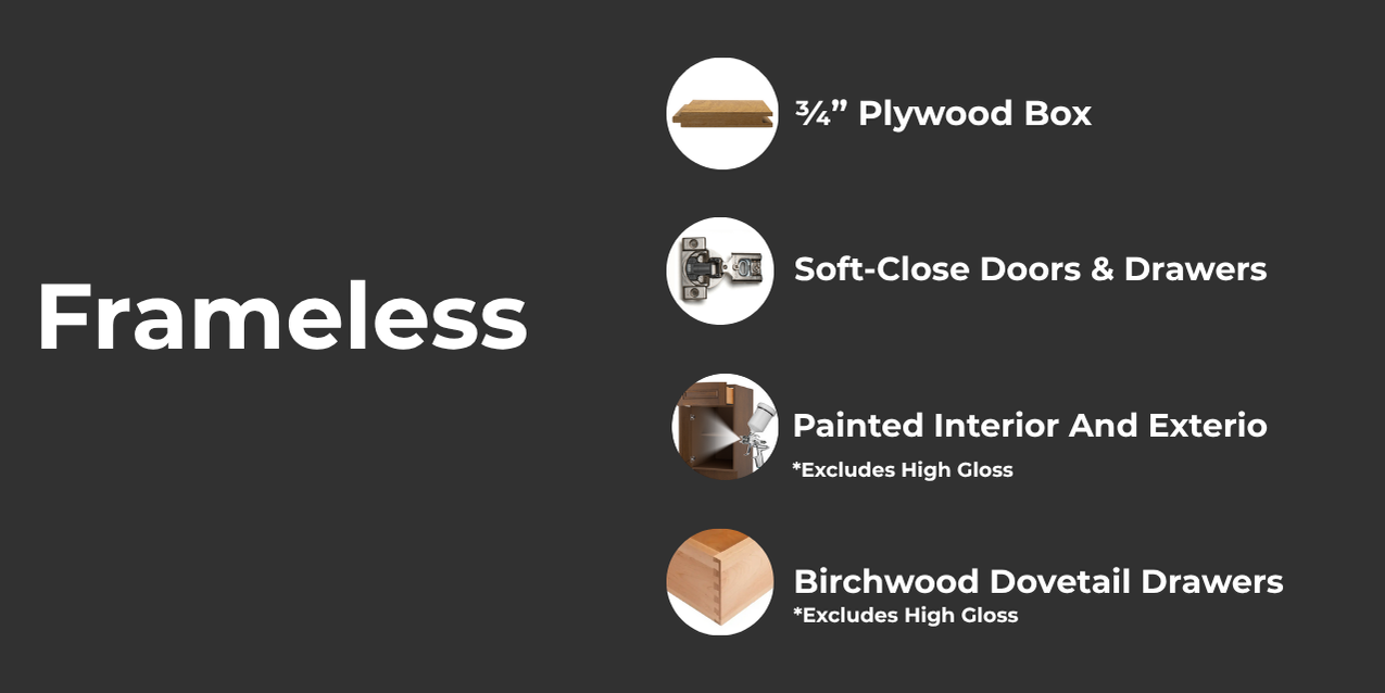 Frameless cabinets, often referred to as European-style cabinets, are designed without the traditional face frame found in standard cabinet construction. This modern design allows for full access to the interior, making them ideal for maximizing storage space and achieving a sleek, contemporary aesthetic. Because there are no center stiles, doors and drawers are larger and more accessible, offering a clean, seamless look.